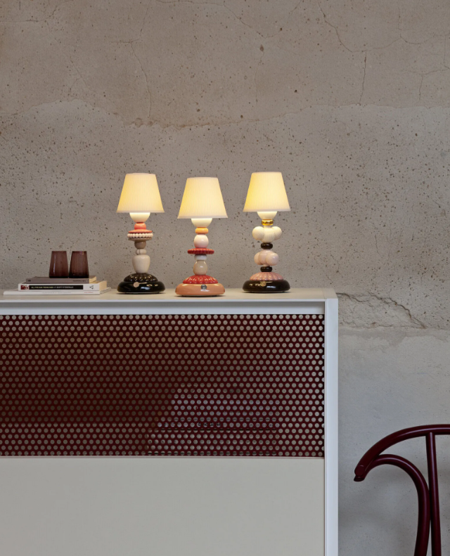 Ecco come questa collezione di lampade da tavolo wireless con una leggera autonomia e un sistema USB ricaricabile, progettato con motivi vegetali che evocano, a seconda dei modelli, palme, cactus, girasoli o fiori di loto.
