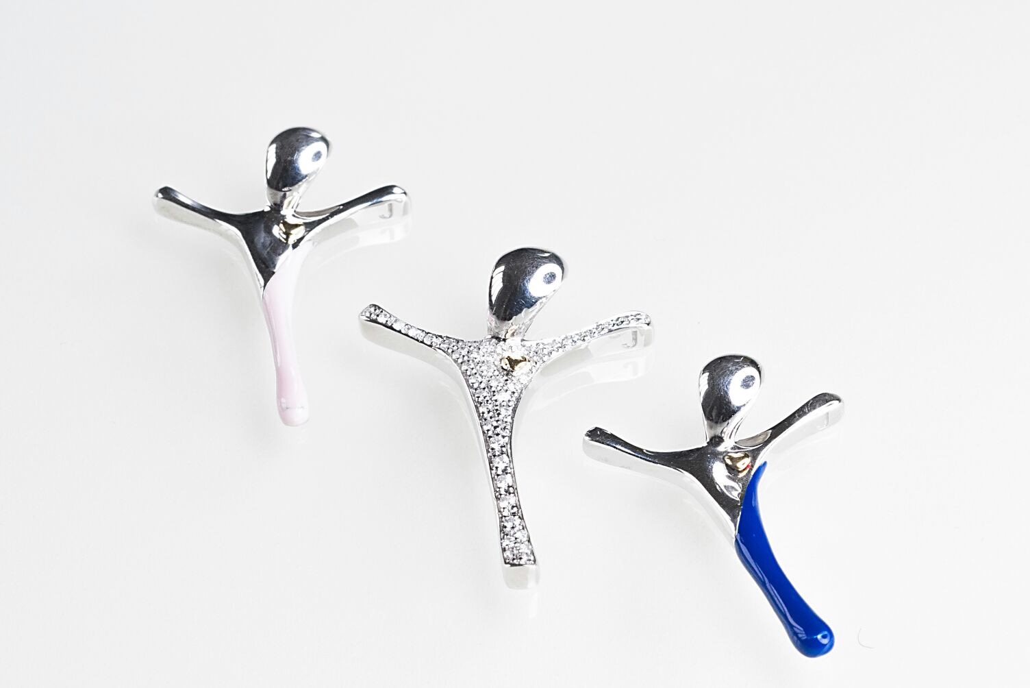 Ciondolo in argento 925°/°° con duraliti e cuoricino in oro giallo 18 kt., nato dalla curiosità e volontà di due bambini