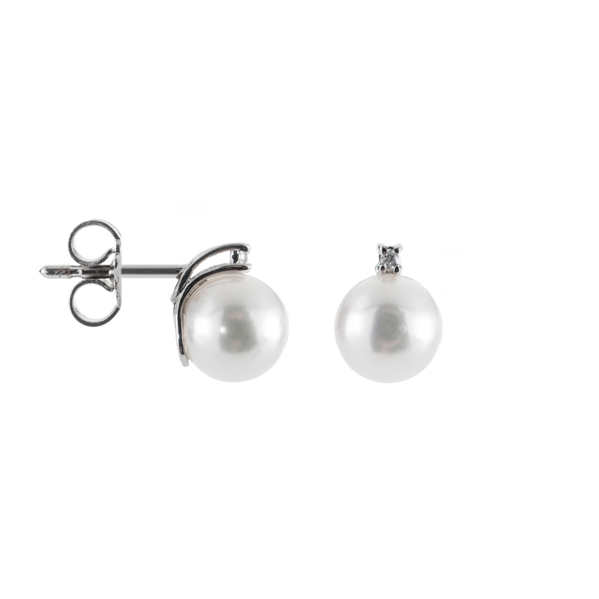 Orecchini in oro bianco 18kt. con perla coltivata giapponese Akoya e diamante naturale taglio brillante