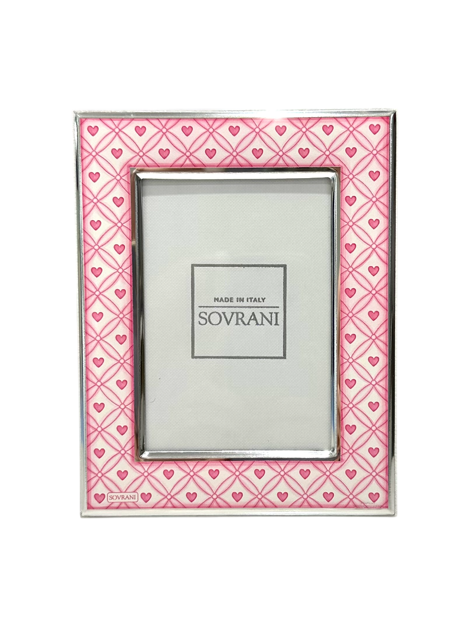 Cornice in argento bilaminato con smalti, retro legno bianco