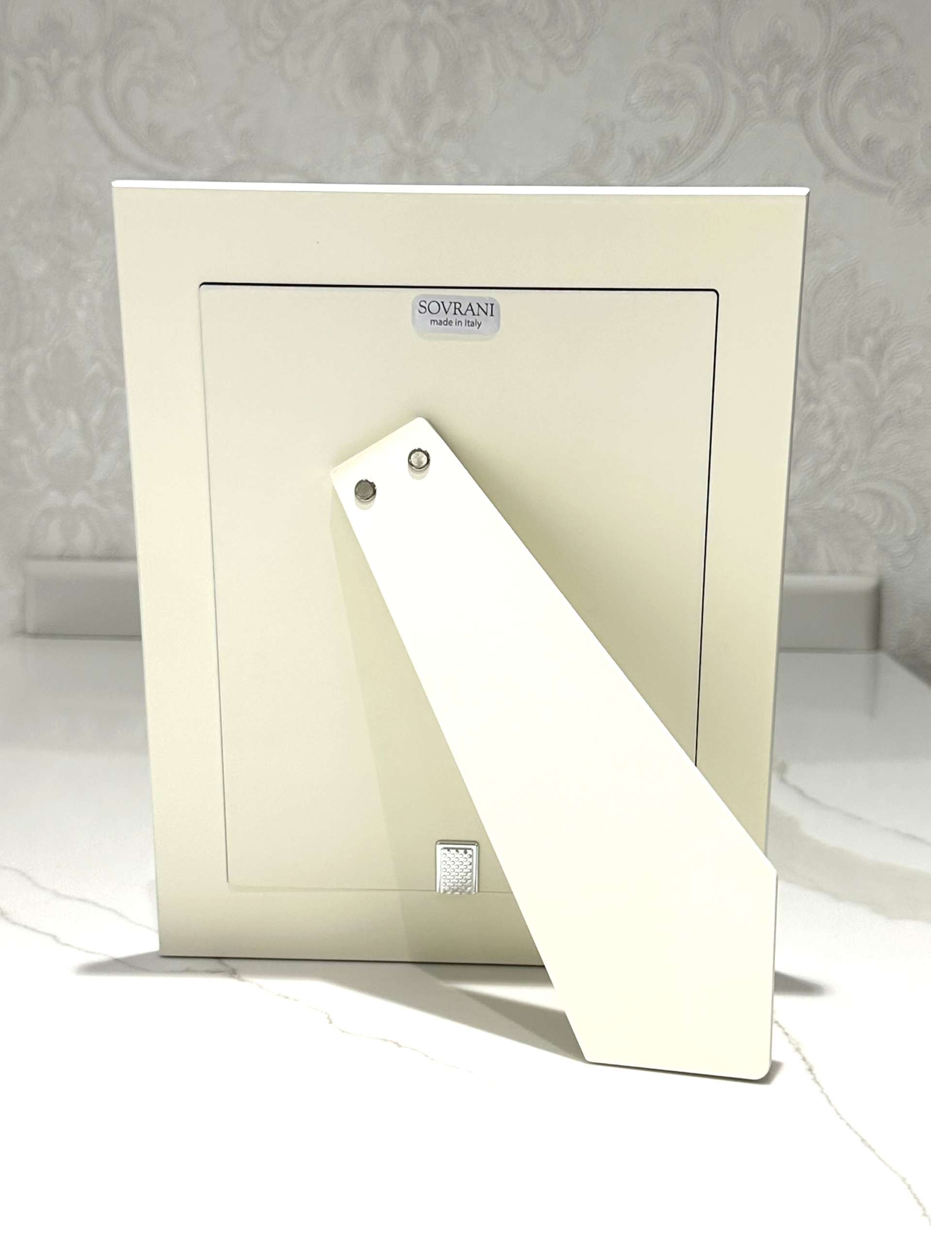 Cornice in argento bilaminato con smalti, retro legno crema