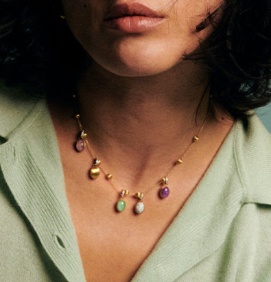 Pendente in oro giallo 18kt e boule piccola verde con doublette di cristallo di rocca e giadeite, ai lati sono presenti diamanti naturali. , sulla contro maglia sono presenti diamanti naturali taglio brillante